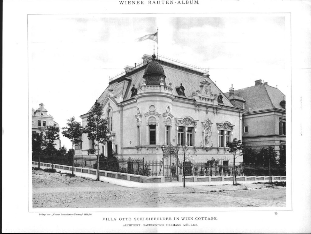 - Müller, “Das Wiener Cottage,” 76; also “Villa Otto Schleiffelder in Wien” in Wiener Bauten-Album. Beilage zur Wiener Bauindustrie-Zeitung, Nr. 8 and 9, June 1, 1899, 22. ↩︎