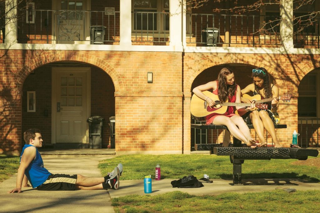 “Whenever I come home and I see my suitemates sitting out here, everyone just comes out and talks about their day and what they’re up to. … There’s a guy here who sometimes comes out and plays a guitar. … Lucky for us!”