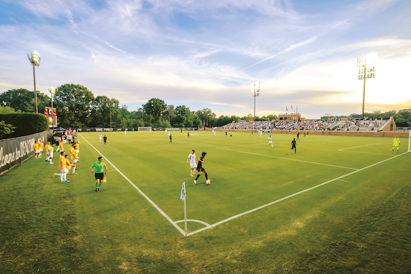 Ugo Okoli (’25) played soccer at Wake Forest from 2011 to 2013 before leaving to play professionally. He returned last year to finish his degree and savored being simply a fan. “It’s always peaceful seeing the grass. … If the game starts at seven, I can show up — 7:05, no problem, just relax, watch some good soccer, and be in a good environment and just be a fan really. … That fresh air is always crucial — and I was able to play around the world. Each environment has, I swear, a different scent or A different feeling with the air.”