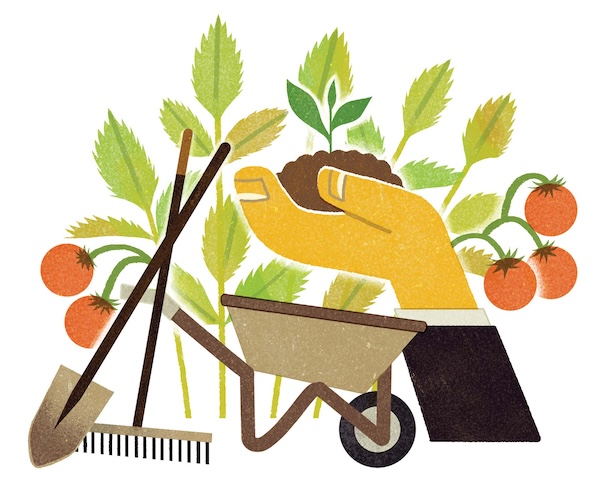 As the semester progresses and the weather warms up, they meet more often in the Campus Garden, relating the definition of gardening’s purpose that they develop in class to their own experiences. On a sunny Friday morning in April, Vincent and a Campus Garden intern show 11 students how to use garden forks, scuffle hoes, spades and wheelbarrows to prepare beds for tomato planting that contributes to research led by Gloria Muday, Charles M. Allen Professor of Biology and director of the Center for Molecular Signaling.