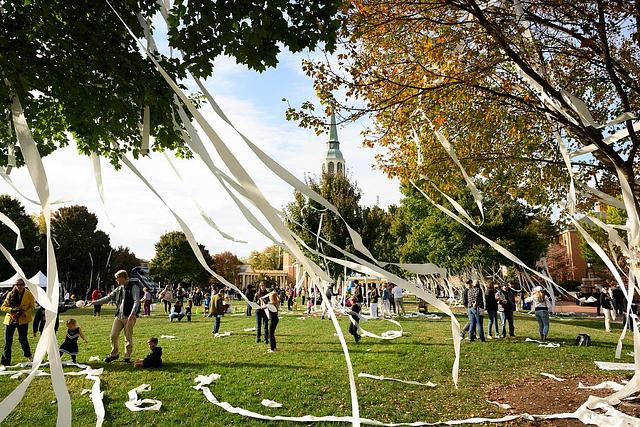Kids wrapped themselves (or their siblings) in as much stray TP as they could grab. The rolling coincided with Festival on the Quad, when alumni stroll the Quad to see friends and play games. Young and old flocked to tables for face-painting, Wake Forest swag and the Department of Physics’ science experiments. As if the scene weren’t joyous enough, the bells began to peal from Wait Chapel.