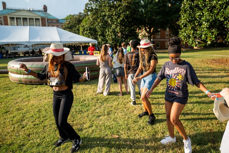 Students pull out their cowboy boots for line dancing and mechanical bull riding at Wake Out West, an event hosted by Student Union on Manchester Plaza.